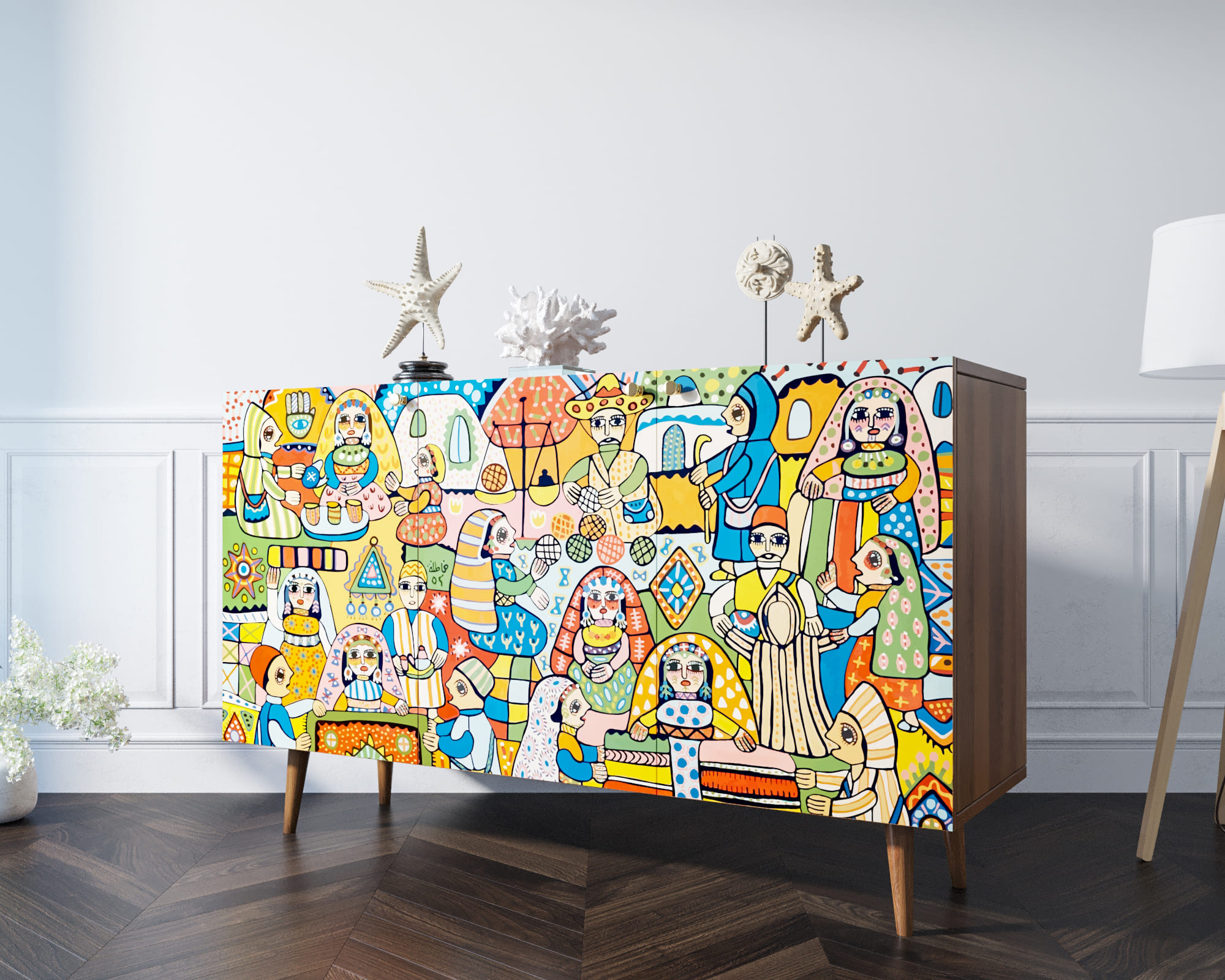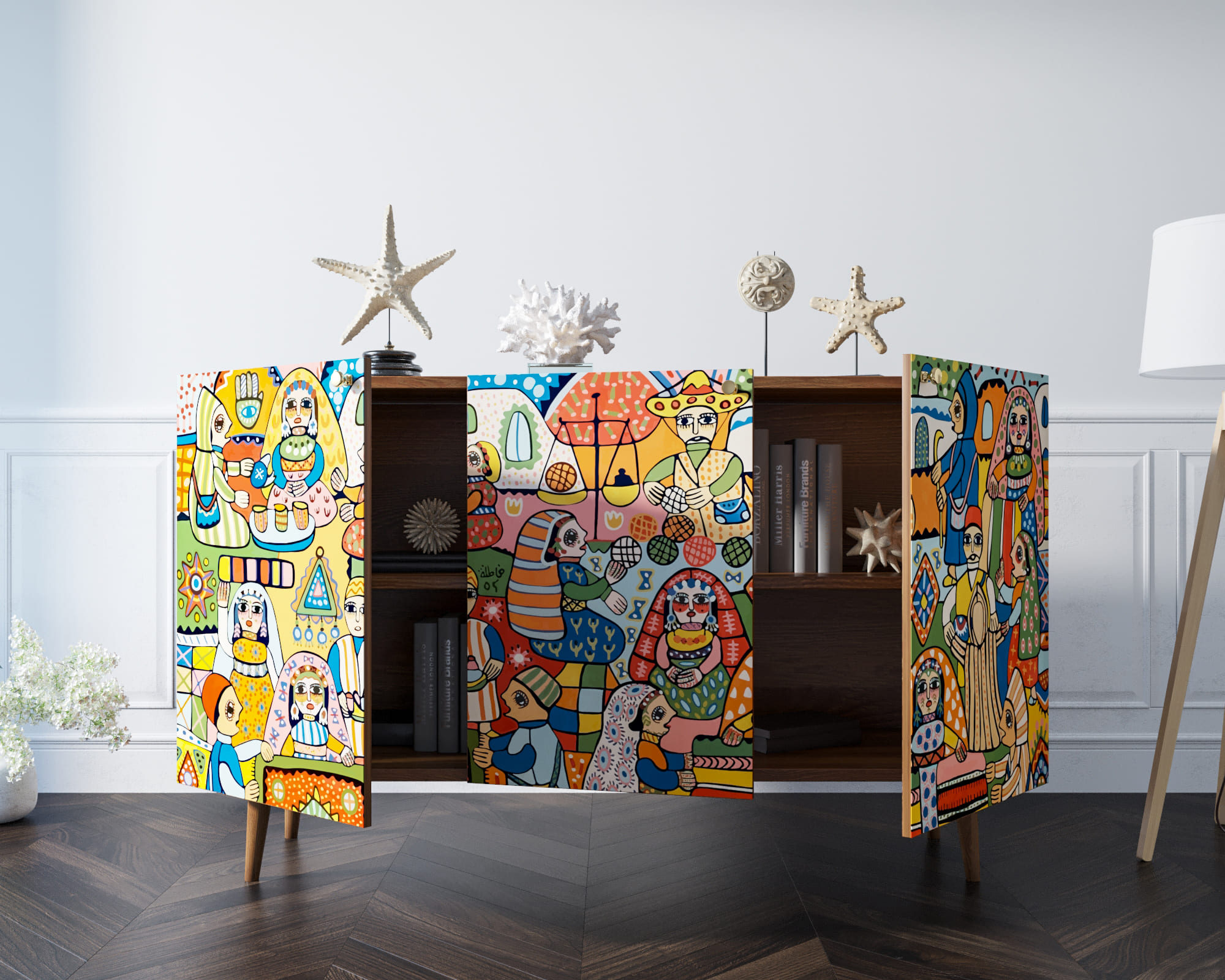 Комод "Berber" с тремя дверками на петлях с доводчиками достаточно прост и практичен. Дизайнерские принты на фасадах создадут акцент в любом интерьере, а две вместительные секции внутри разделенные перегородкой и полкой позволят держать в порядке все необходимые вещи.