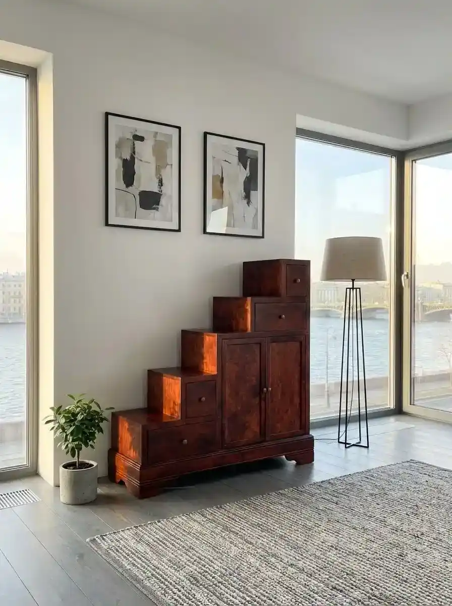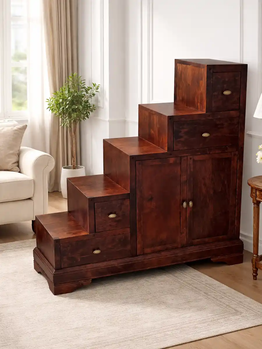 Тумба-лестница «Луи Филипп ОВ 02» изготавливается из массива ольхи или из массива дуба, на выбор. И для ольхи, и для дуба доступно множество вариантов отделки по таблице RAL. Тумба имеет широкие устойчивые опоры.