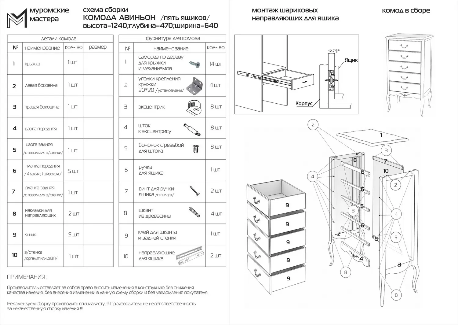 Обращаем Ваше внимание, что качественная сборка мебели является сложным процессом, который требует профессионального подхода. Поэтому настоятельно рекомендуем заказывать нашу сборку, т.к. в нашей компании работают только высококвалифицированные сборщики, имеющие многолетний опыт работы в этой сфере деятельности. В случае приглашения сторонних специалистов, мы не несем ответственности за качество и правильность сборки. Исправления и недостатки "такой" сборки производятся путем заказа базовой услуги в компании по действующим тарифам.
