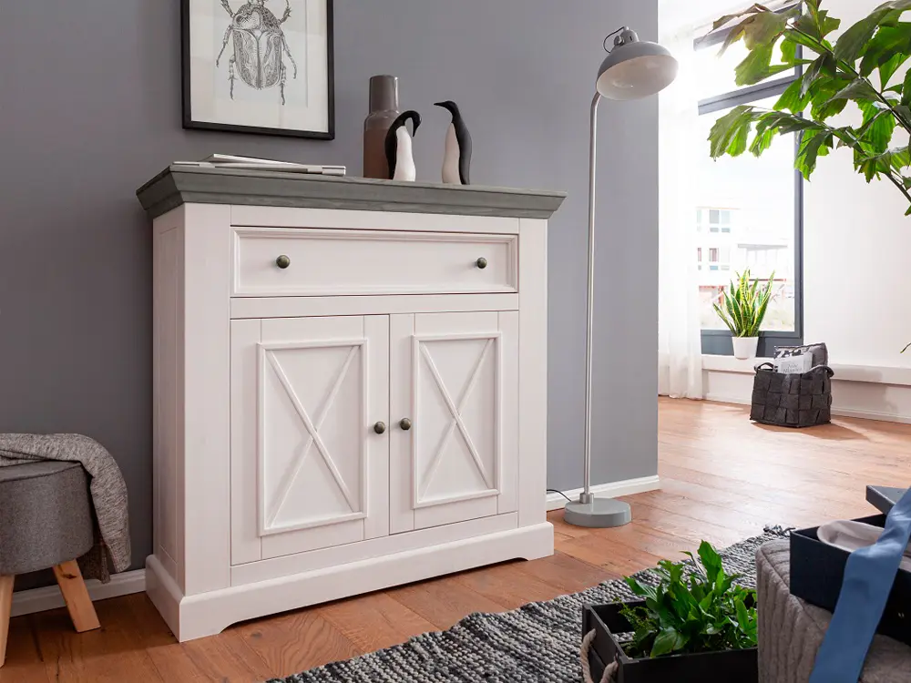 Комод Форест 2 двери 1 ящик с 2 полками Форест белый воск/серый
