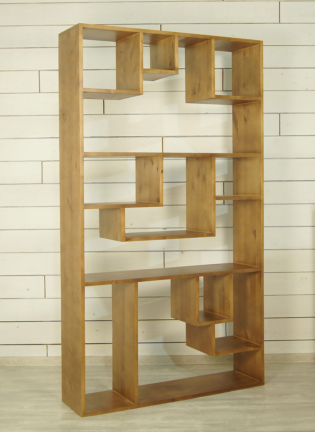 Открытый стеллаж «Aquarelle Birch» в стиле лофт сочетают минималистичный дизайн форм и богатый рисунок натурального дерева. Они изготовлены из массива березы. Необычное расположение полок позволяет оптимально организовать пространство для хранения различных предметов. Высота в 195 см удобна для большинства пользователей.