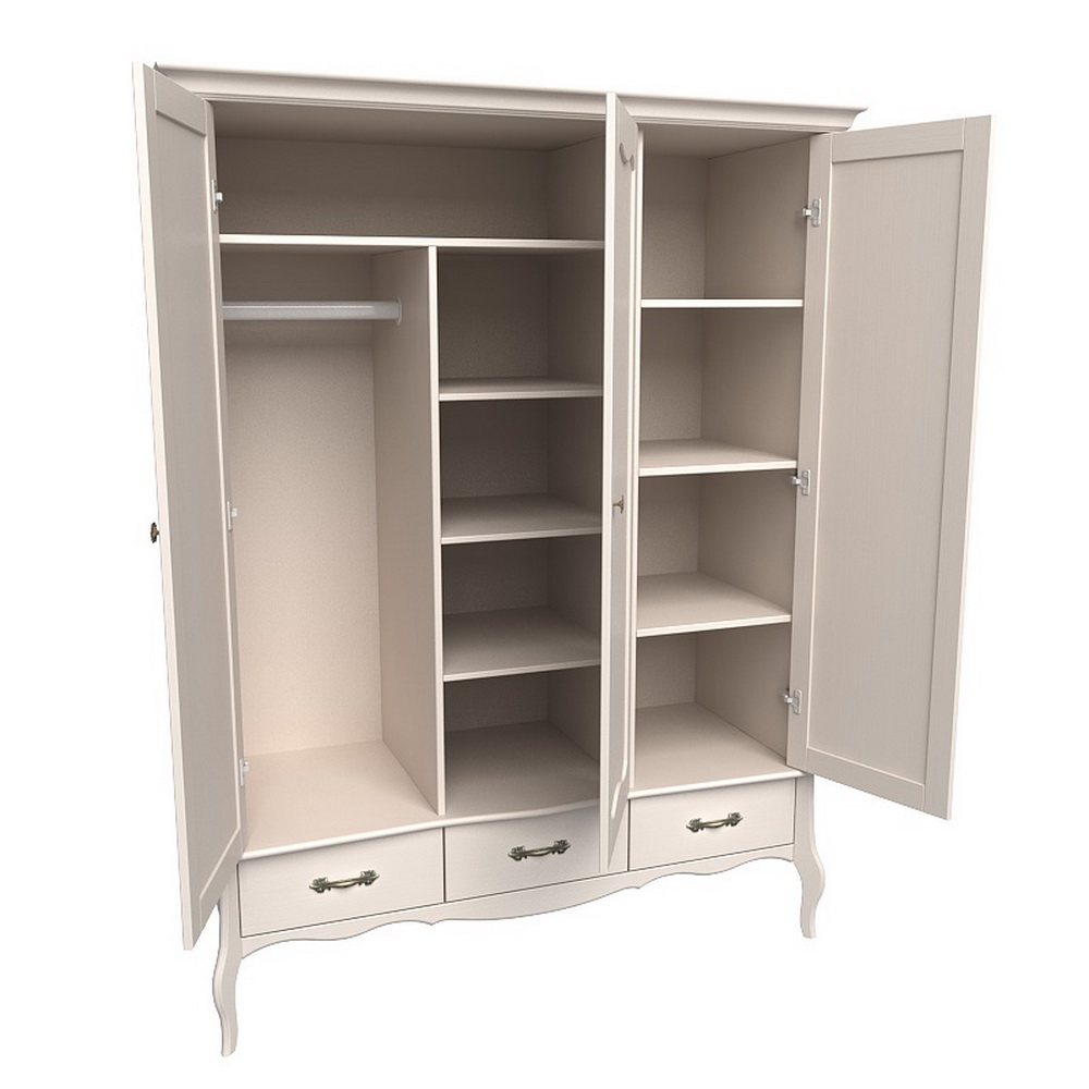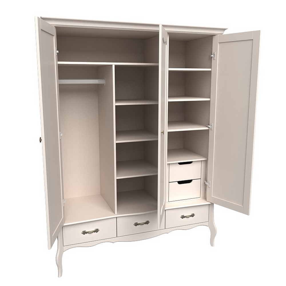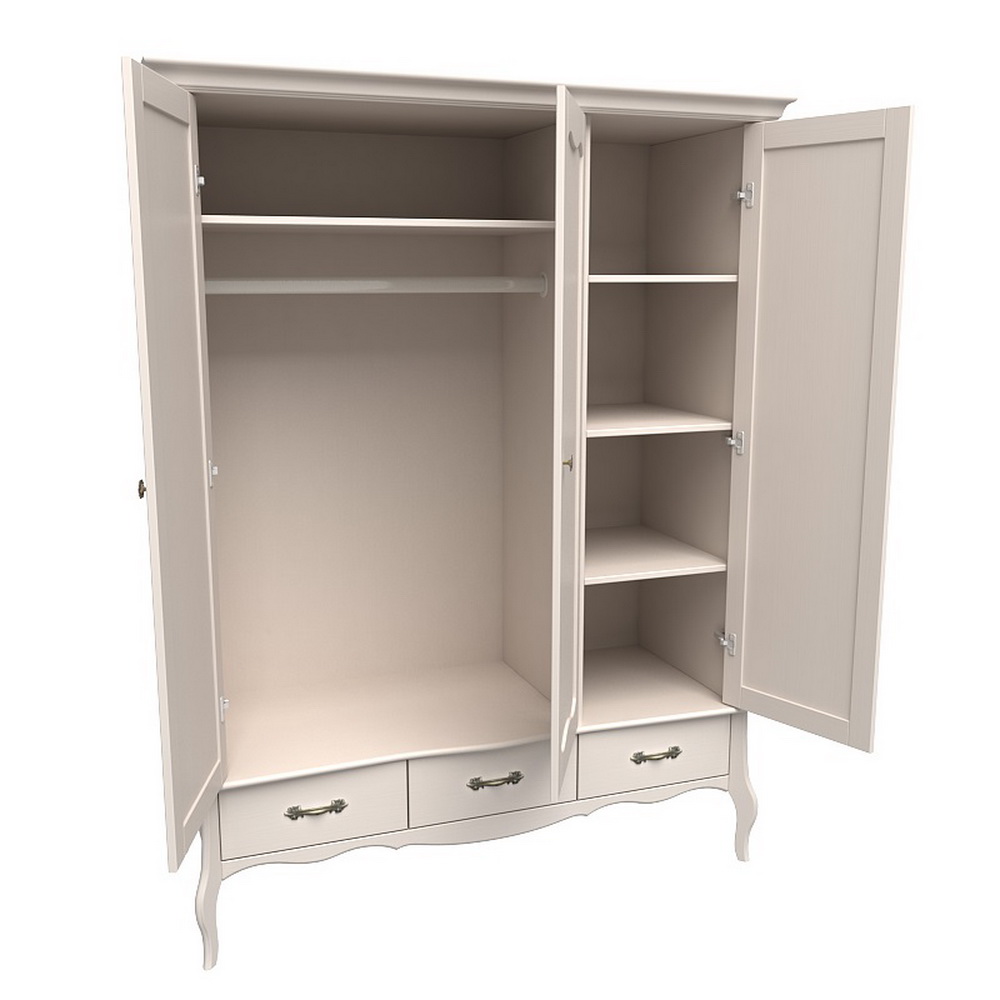 Изящный и одновременно вместительный шкаф Лебо 3-х дверный с 2-я стеклянными дверями и одной зеркальной, выполнен в элегантном французском стиле. Изысканные гнутые ножки подчеркивают стиль Прованс. Шкаф прекрасно впишется как в классический, так и в другой интерьер. При изготовлении шкафа, кроме массива сосны, не применяется никакие другие материалы, такие как дсп, мдф, которые могли бы поставить под сомнение экологичность изделия.