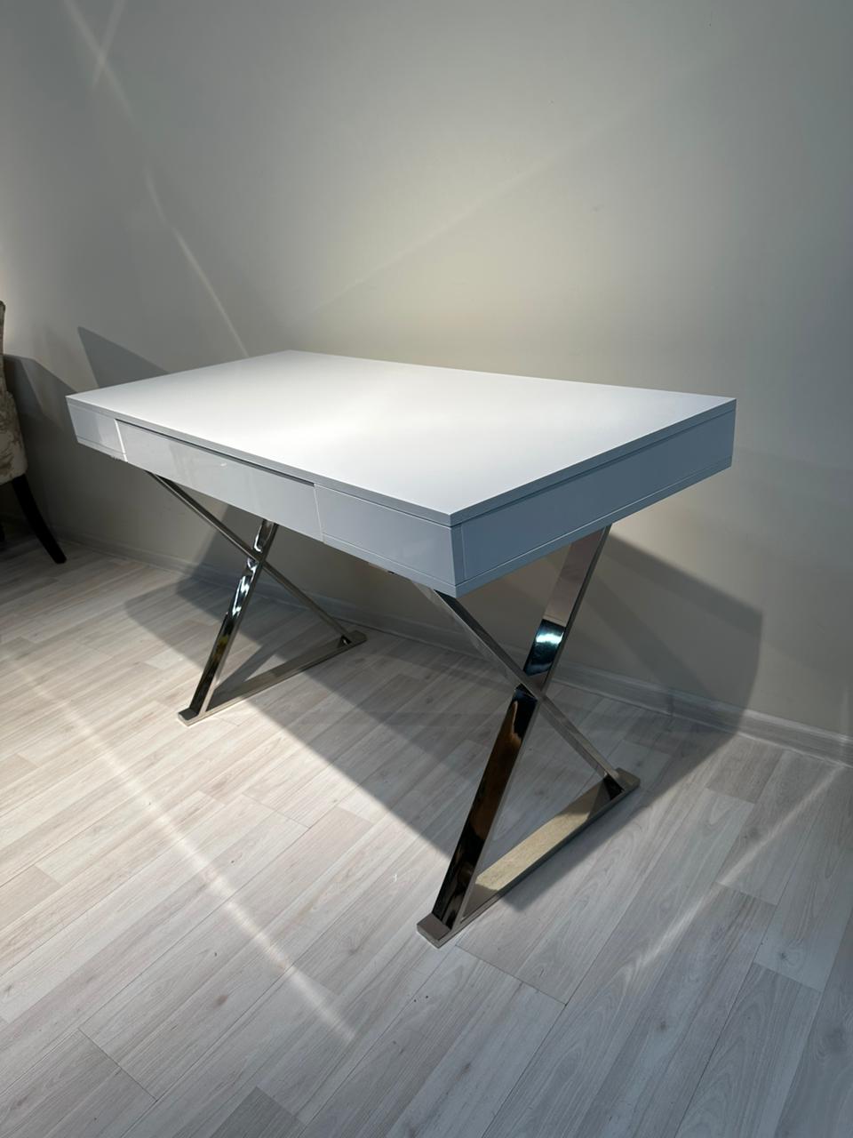 Этот стол-консоль обладает лаконичным дизайном, поэтому идеально впишется в интерьер любого помещения, офиса, салона красоты или комнаты дома: поставьте стол в детскую, чтобы получился замечательный рабочий-письменный стол для школьника, в кабинет, чтобы использовать его как компьютерный столик. Вы можете поставить на стол зеркало - и вот готов отличный туалетный столик в спальню. Стол имеет удобный ящик с полезным размером 61х32х5 см, в котором можно хранить документы, канцелярию, гаджеты или другие разные мелочи. Столешница – глянцевое МДФ, что экологично и безопасно для здоровья. Крестообразные ножки – нержавеющая сталь с глянцевым хромированием методом гальванического покрытия, что обеспечивает высокое качество и длительную эксплуатацию. Размер: 120x55x76 см 1шт/2корбки Размер упаковки: 127x61x16; 69x56x16 см Вес нетто: 28кг Вес брутто: 30кг Гарантия 1 год